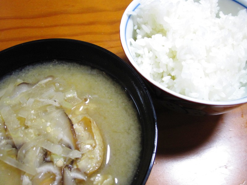 朝は、残りご飯と味噌汁で、おじやっぽくして食べた。