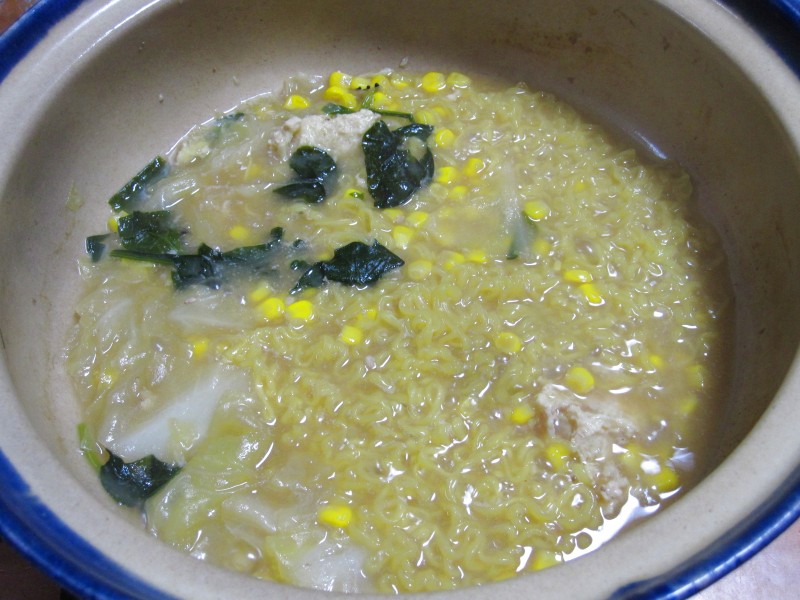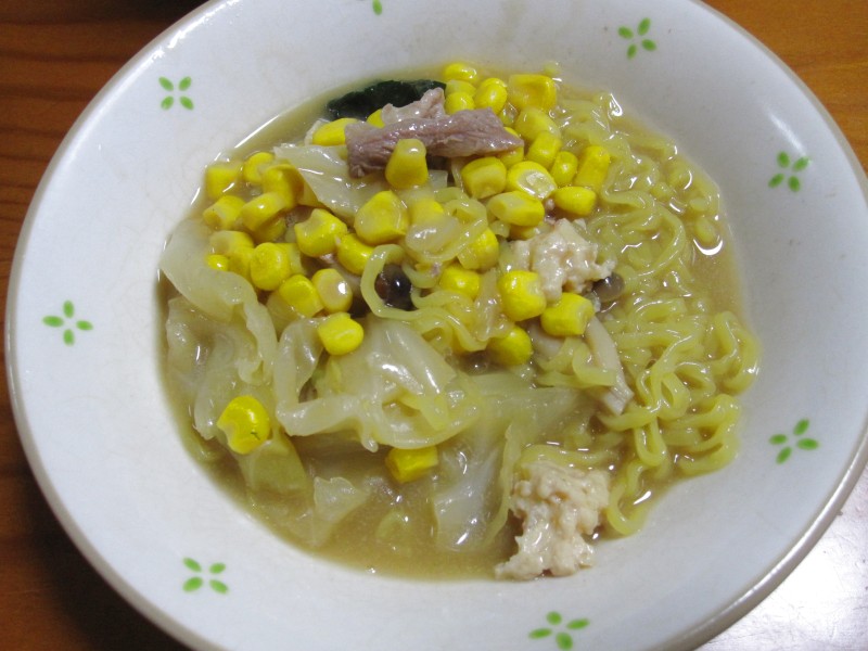↑そして、夫の人が麺と一緒に入れたコーンが、甘くてうまかった。