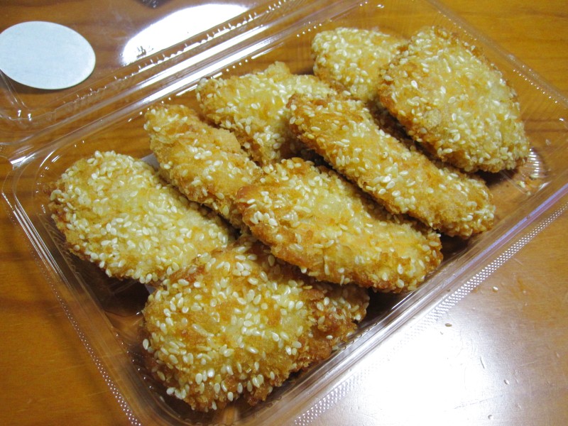 ↑夫の人が帰りに買ってきた、ゴマたっぷりササミフライ。