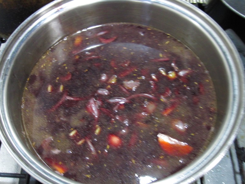 ↑マリネしていたワイン。あくとり前。
