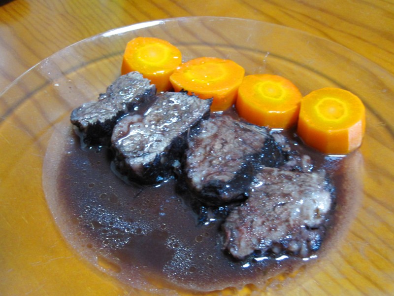 ↑牛肉のワイン煮、完成~。付け合わせは、人参のグラッセ。