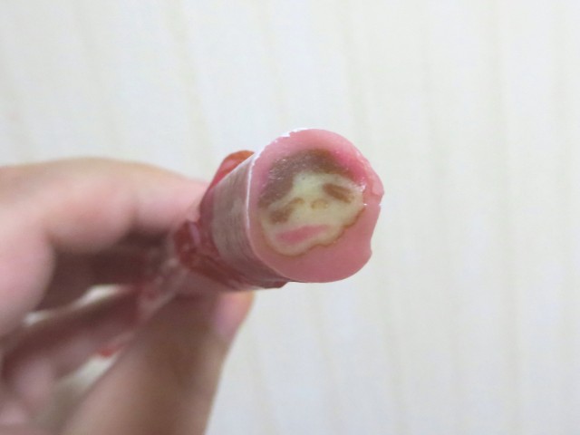 「切り口がペコちゃんの顔になってるよ!」って書いてあって。