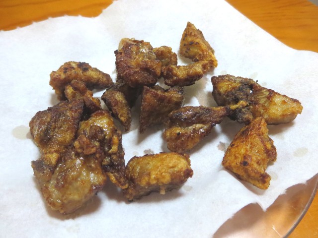 沼津で買ったほほ肉を、夫の人が唐揚げにしてくれた。