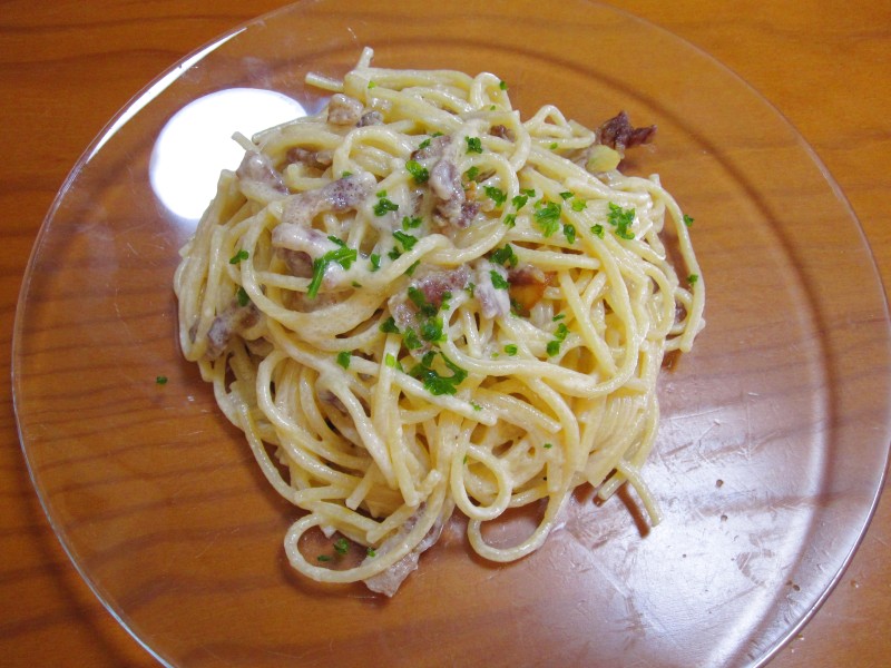 ↑ブランチは、チーズクリームパスタ。濃ゆい。うまい。