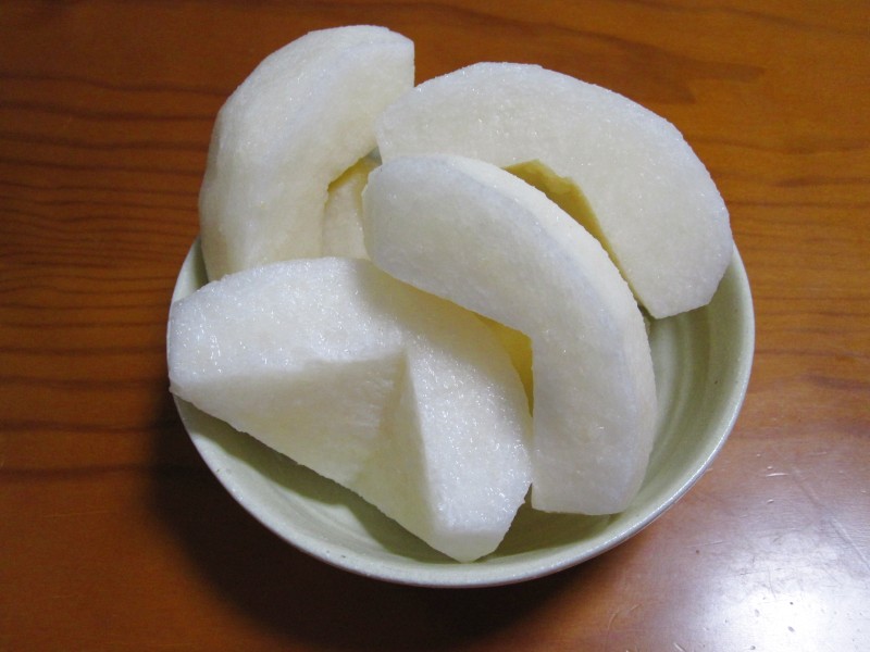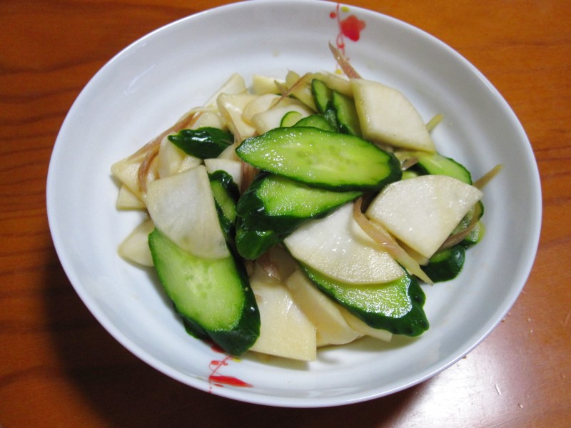 ↑キュウリ・かぶ・みょうがの浅漬け。