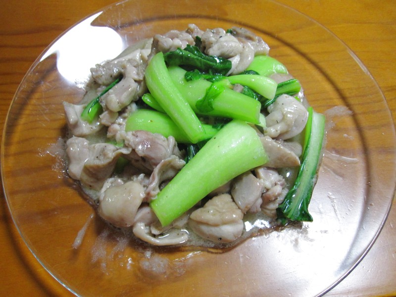 ↑鶏肉とチンゲン菜の塩ダレ炒め。