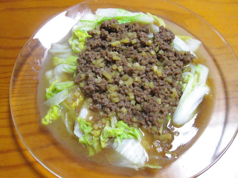 ↑白菜のひき肉あんかけ。あんかけがシャバシャバだったー。