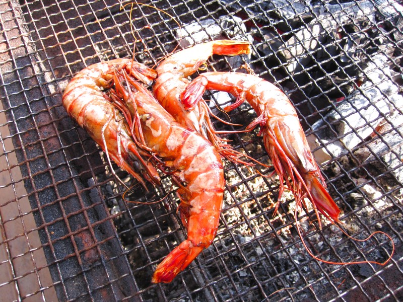 焼きたてのえびの殻をむく時は、えび汁が超熱いので危険。