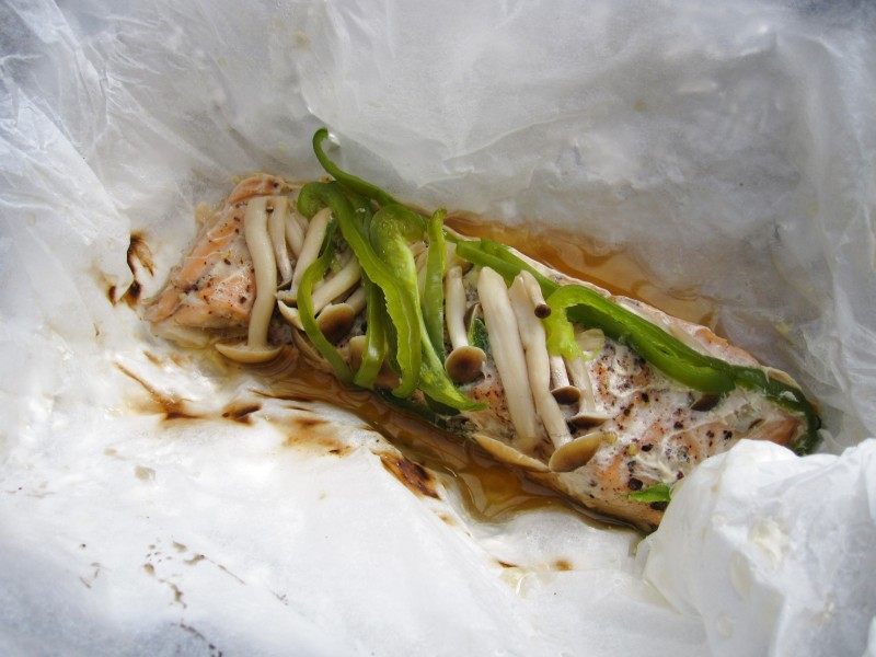 ↑鮭のホイル焼き。