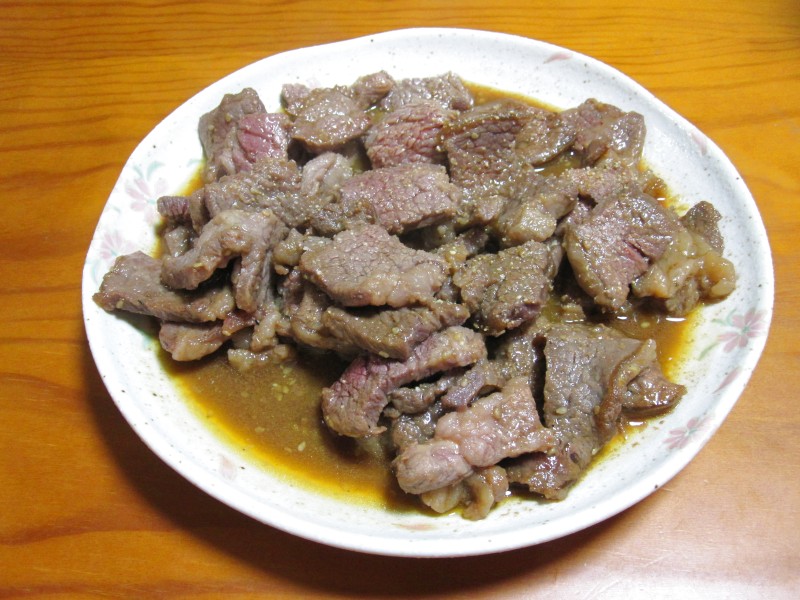 ↑BBQの残り肉を焼いたやつ。うまうま。