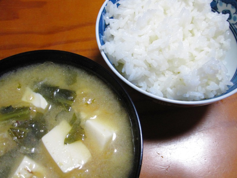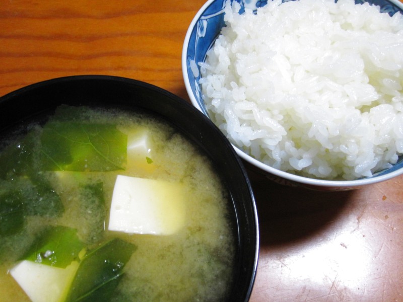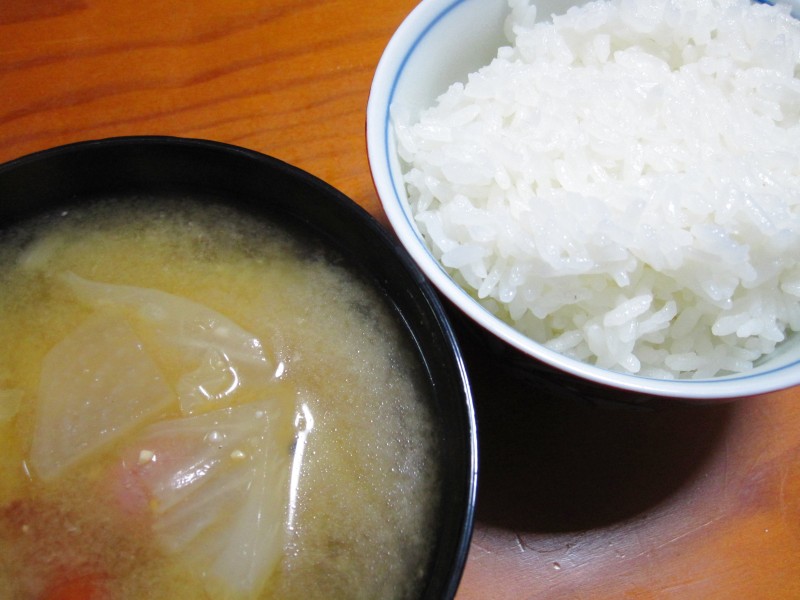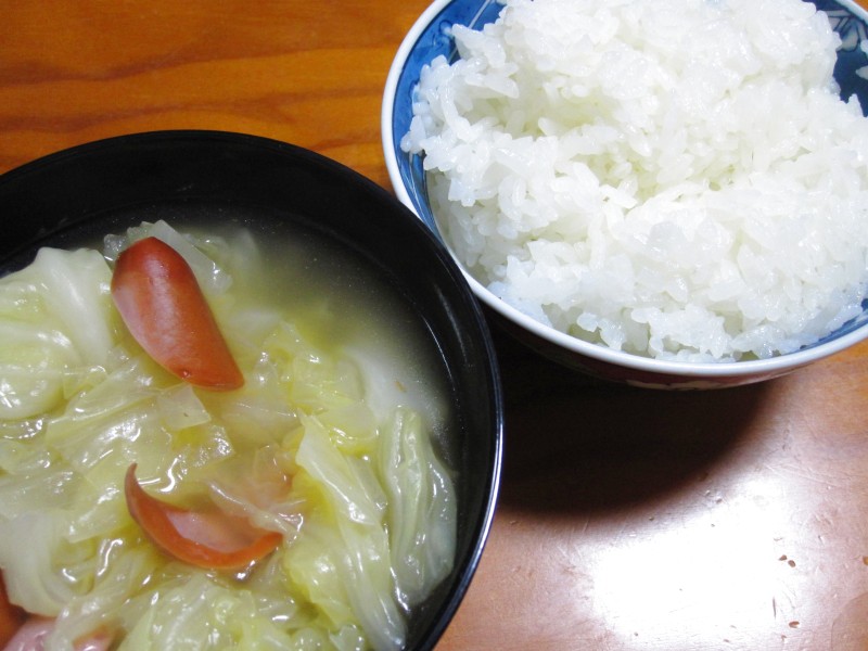 ↑夜ご飯。キャベツスープ・ご飯。