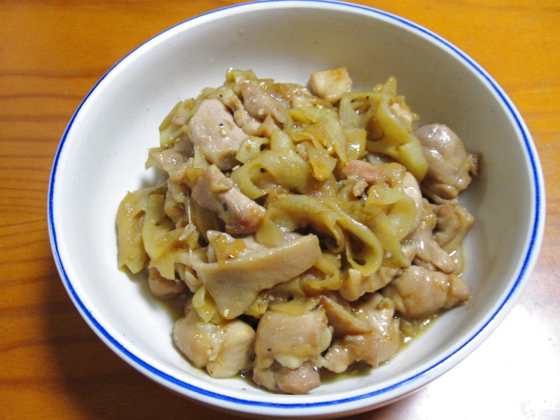 ↑れんこんと鶏肉の炒め物。夫の人に好評。