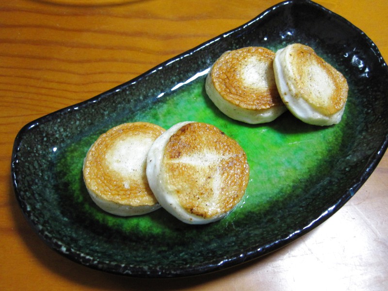 ↑ミニはんぺん。明太子ペースト入り。バターソテー。