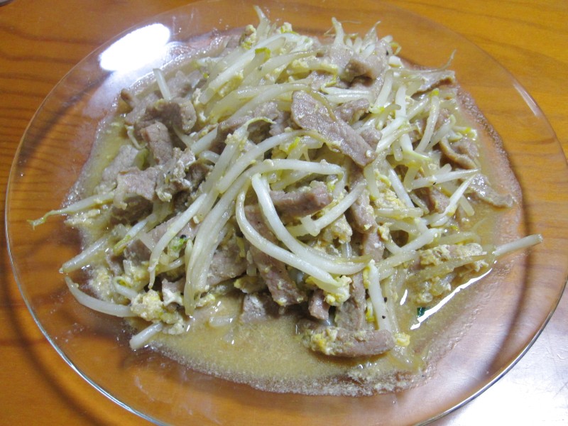 ↑今日のメインは、豚肉&もやしの炒め物。