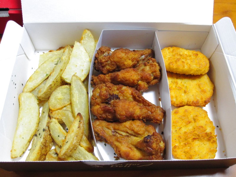 ポテト、辛いチキン、チーズ入りのチキン。