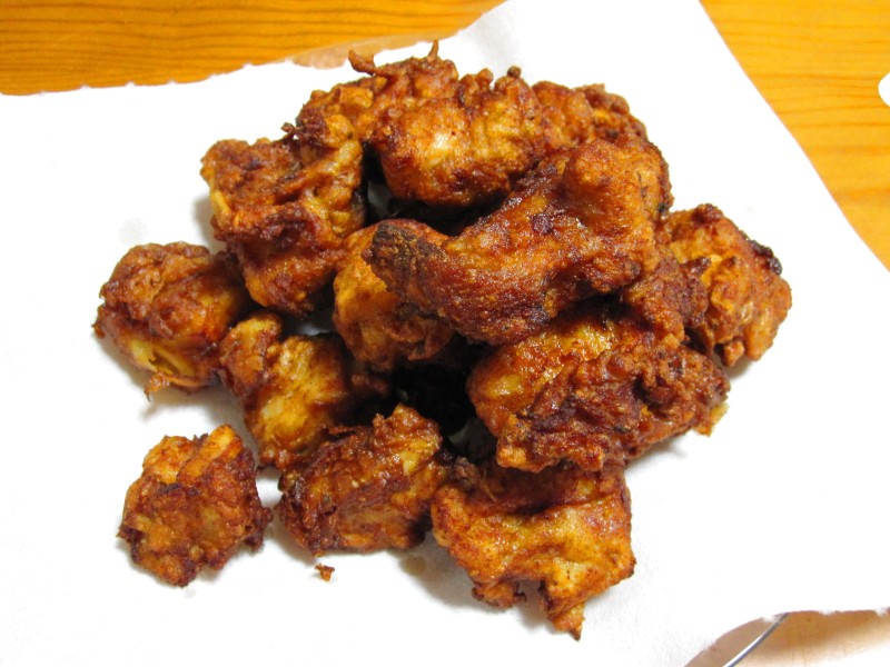 ↑鶏の唐揚げ。夫の人が作る唐揚げは、うまいなぁ。