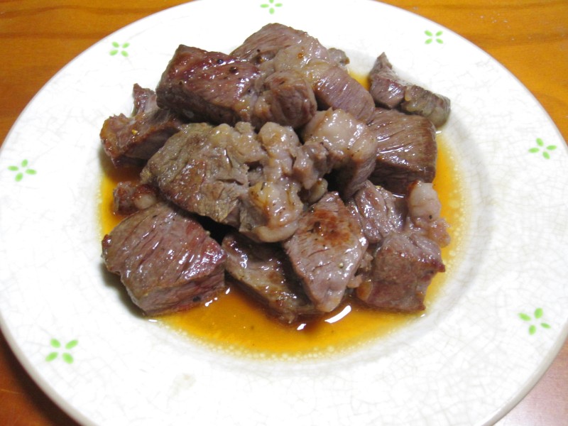 ↑牛肉を焼いたやつ。夫の人が焼いた肉は、うまいなぁ。