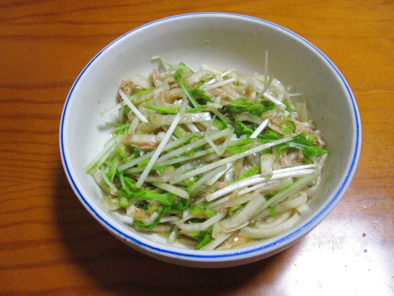 ↑大根・水菜・オクラ・ツナのサラダ。