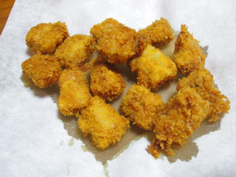 ↑夫の人が揚げてくれた、ひとくちカツ。うまうま。