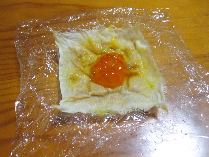 卵黄から水分が出て、ガーゼはぐっしょり、味噌もやわらかい。