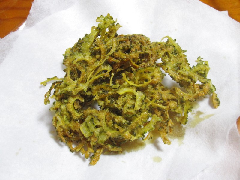 ↑夫の人が帰ってきてから揚げてもらった、ゴーヤチップス。