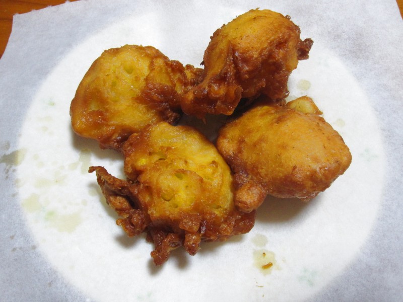 ↑夜ご飯。ゴーヤとコーンのかき揚げ?っぽいもの。