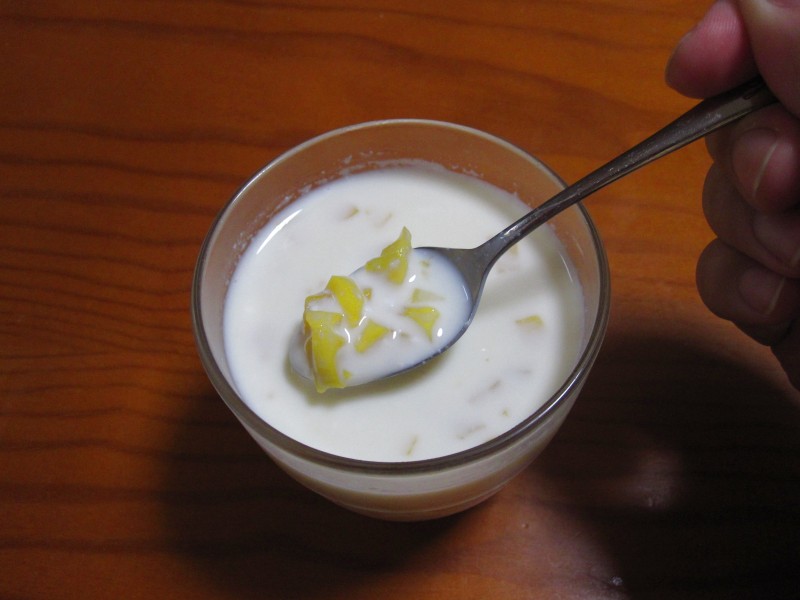 一晩おいて、ヨーグルトっぽいデザートになった。うまうま。