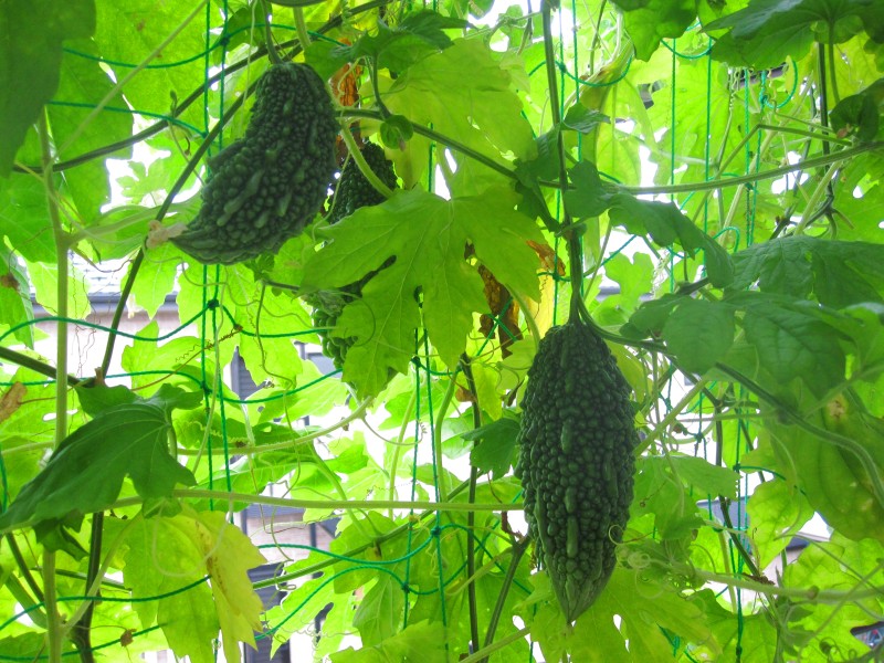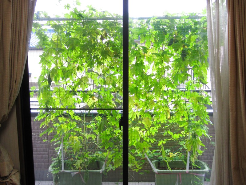 ↑今日のグリーンカーテンの様子。まだまだ元気。