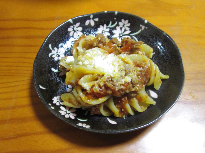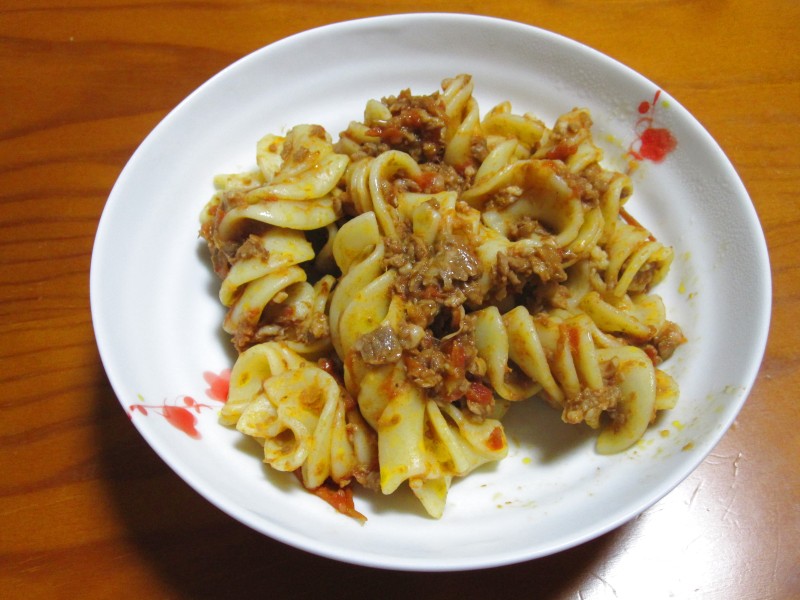 ↑ミートソースパスタ。こないだはひき肉で。今回は薄切り肉で。