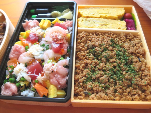 ↑昼ご飯。お弁当いろいろ買ってきてくれた。