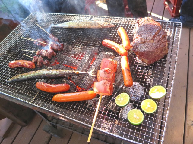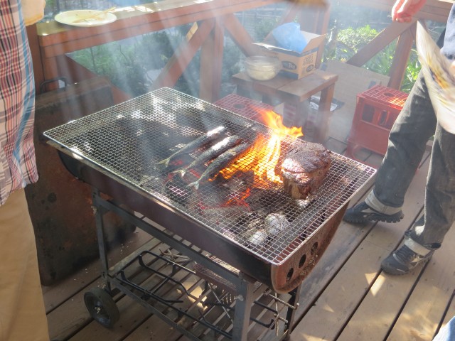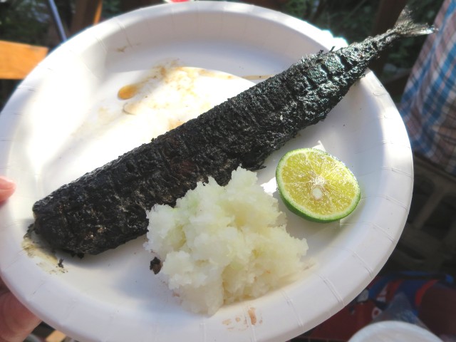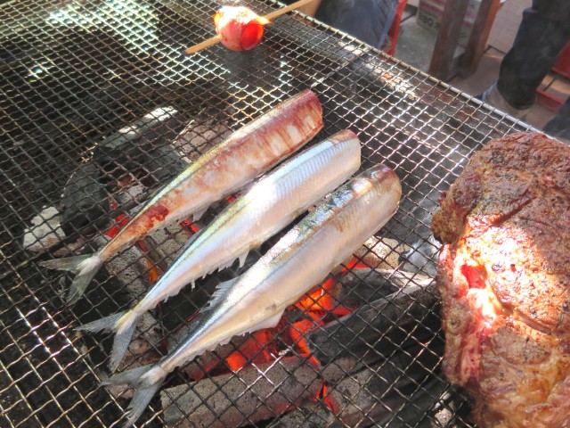 ↑内臓好きには頭付きサンマで。あとソーセージも焼いた。