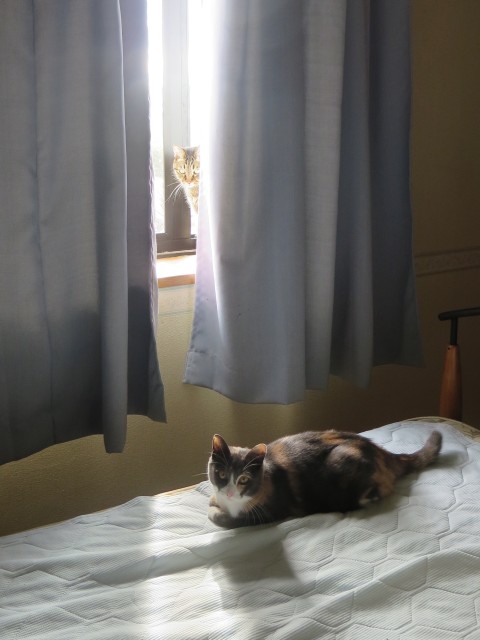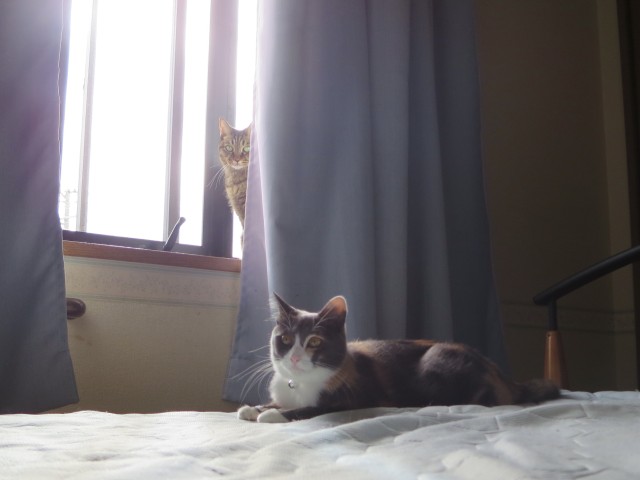 ↑今日のレンたん(ベッド上)&さっちゃん(出窓)。