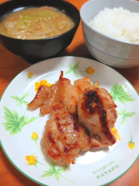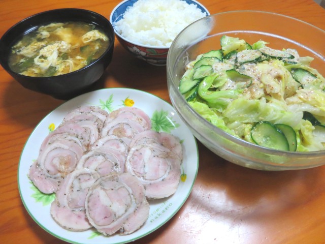 味噌汁は、ここ数日お気に入りの、キャベツ味噌汁。