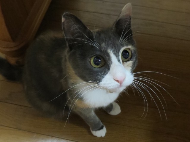 ↑テーブル下、足元で、かわいいアピール?