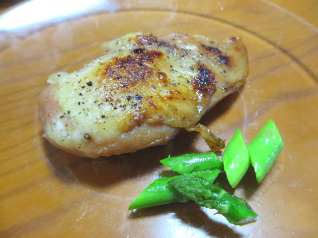 ↑今日のメインは、鶏胸肉の一夜干し。アスパラ添え。