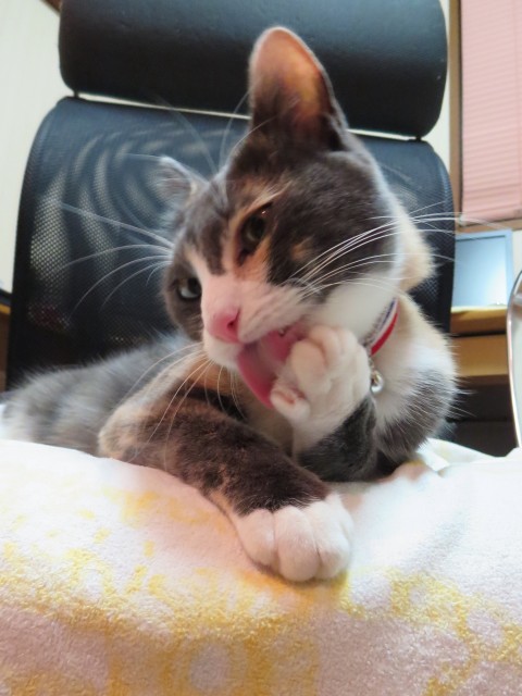 ↑毛づくろいして、リラックス。