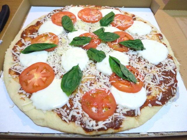 ↑コストコで買った丸型ピザ。マルゲリータ。