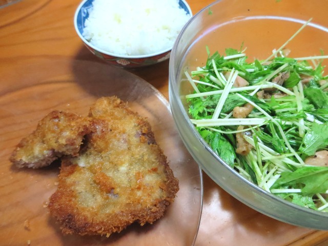↑夜ご飯。〆鯖・一口カツ・キュウリ浅漬け・ご飯。