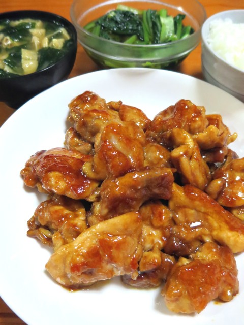 ↑夜ご飯。鶏の照り焼き・味噌汁・小松菜のおひたし・ご飯。