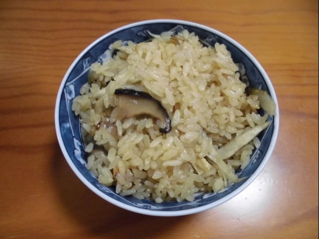 干ししいたけの煮物の煮汁で、炊き込みご飯を作ってくれた。