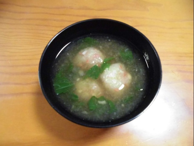 ↑カニカマ入りカブだんご汁。