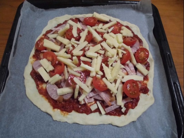 ↑ピザ焼く前、その2。トマトピザ。