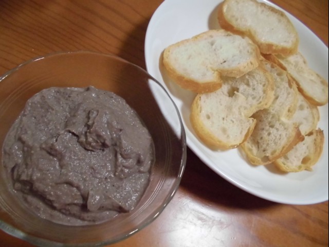 ↑というわけで、レバーパテ、味見。