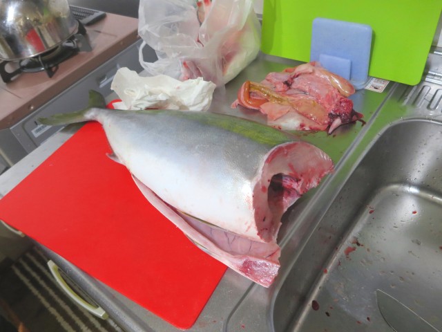 ↑のぞみさんが、テキパキとブリをさばいてくれた。