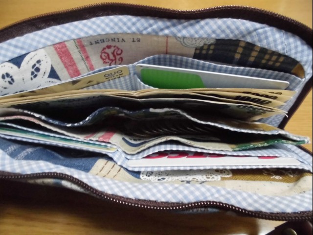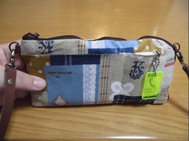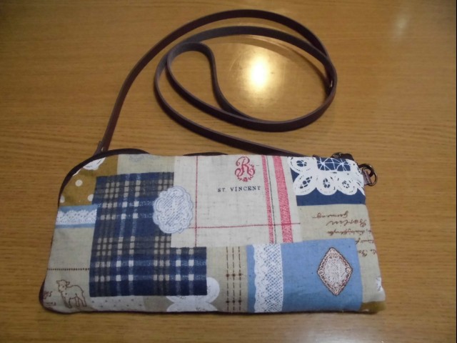 ↑ショルダーひもを付けて、長財布ポシェットを作ってみた。