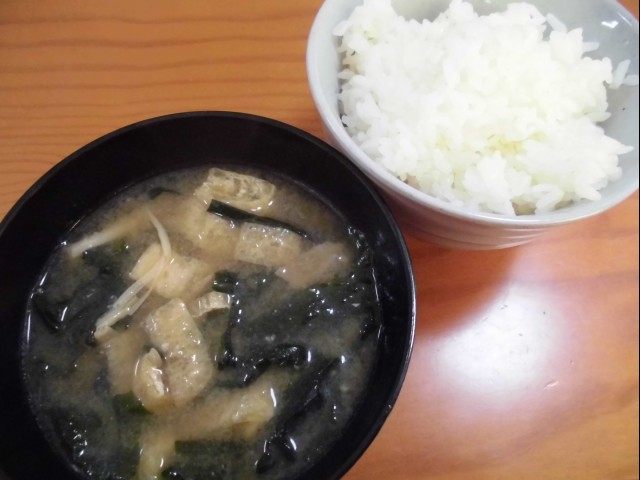 ↑お昼ご飯。味噌汁・ご飯。