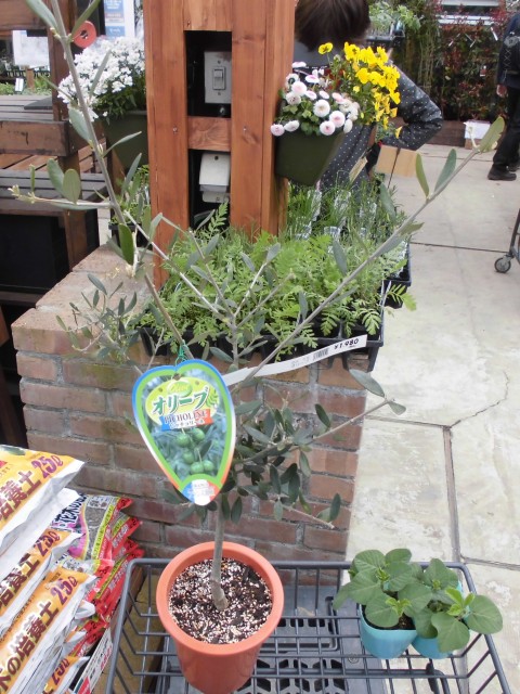 ↑オリーブの若木と、枝豆の苗を買った。