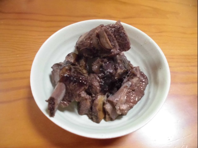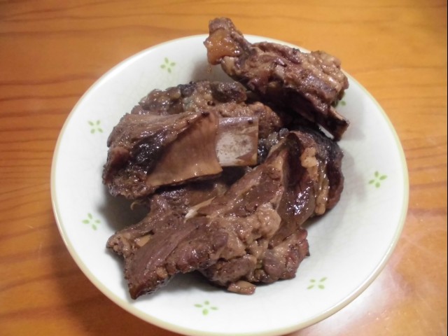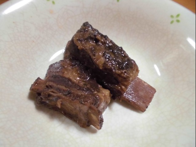 ↑スペアリブのコーラ煮。味見。煮込んだらもっとうまくなりそう。