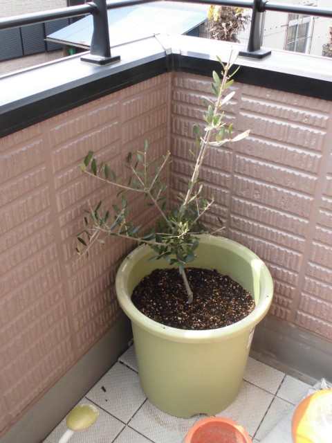 ↑昨日買ってきた、オリーブの若木。まだヒョロっとしてるね。