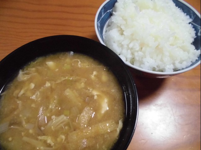 ↑夜ご飯。味噌汁・ご飯。
